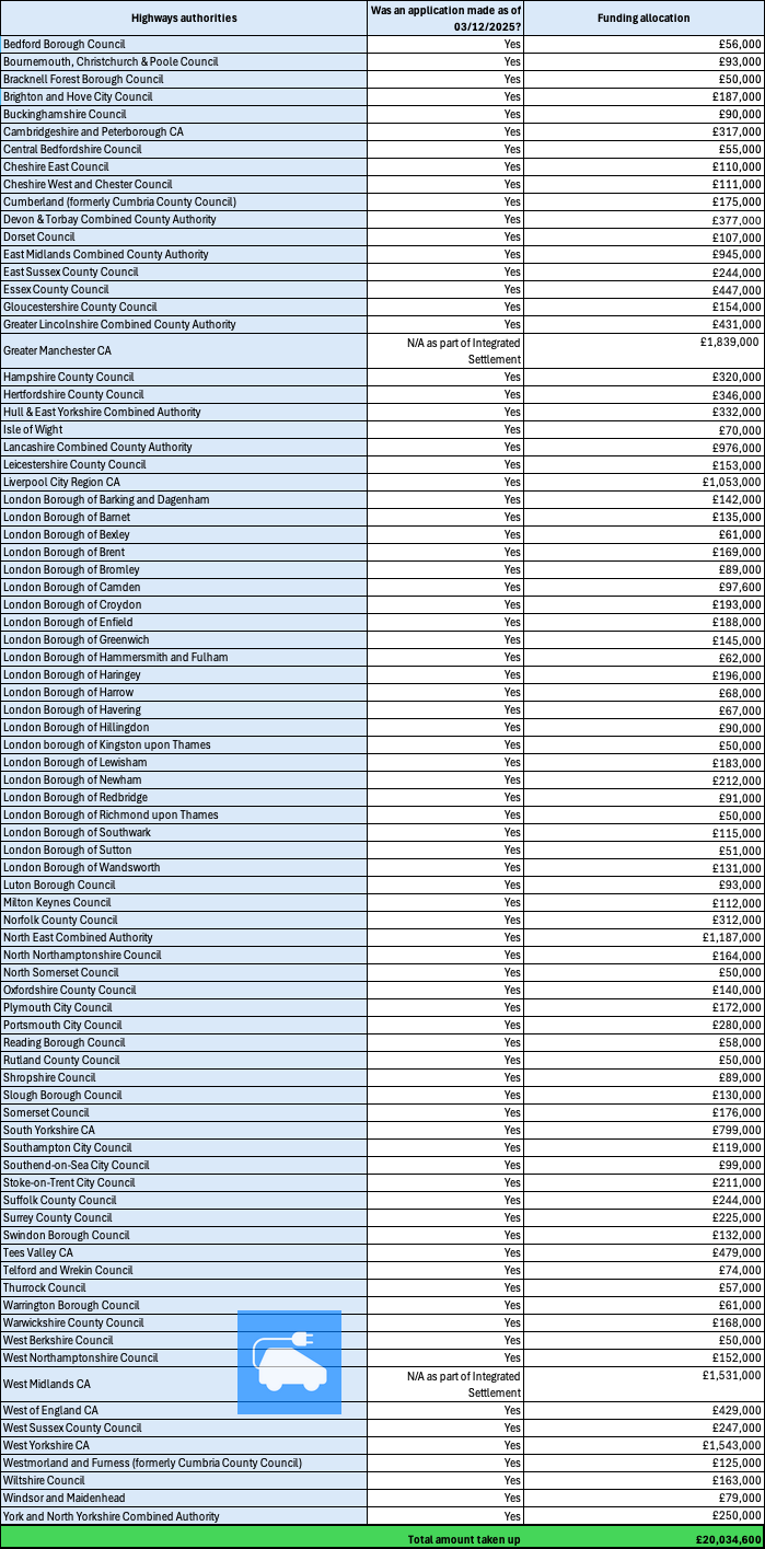 Why a surprise? On Friday afternoon, I received a table from the Department for Transport detailing which local authorities did and did not claim their capital allocations from the EV Pavement Channel Fund.