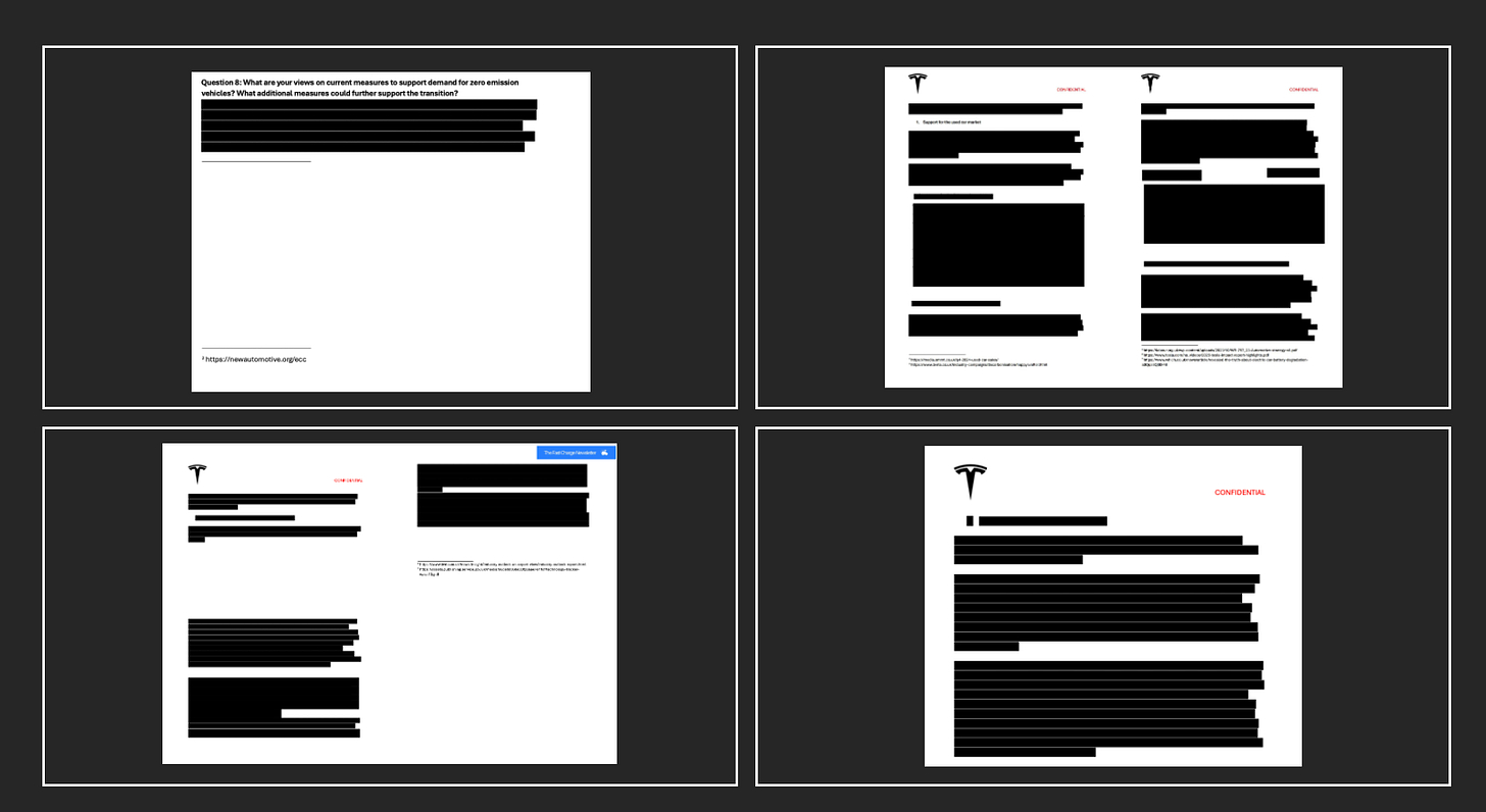 BUT... Tesla’s submission contained around five pages of entirely redacted pages. This included Tesla’s policy suggestions on which incentives DfT should employ to boost EV demand, which were entirely blacked out. This means, while we know what every other carmaker asked for, we know very little about what Tesla lobbied officials for.