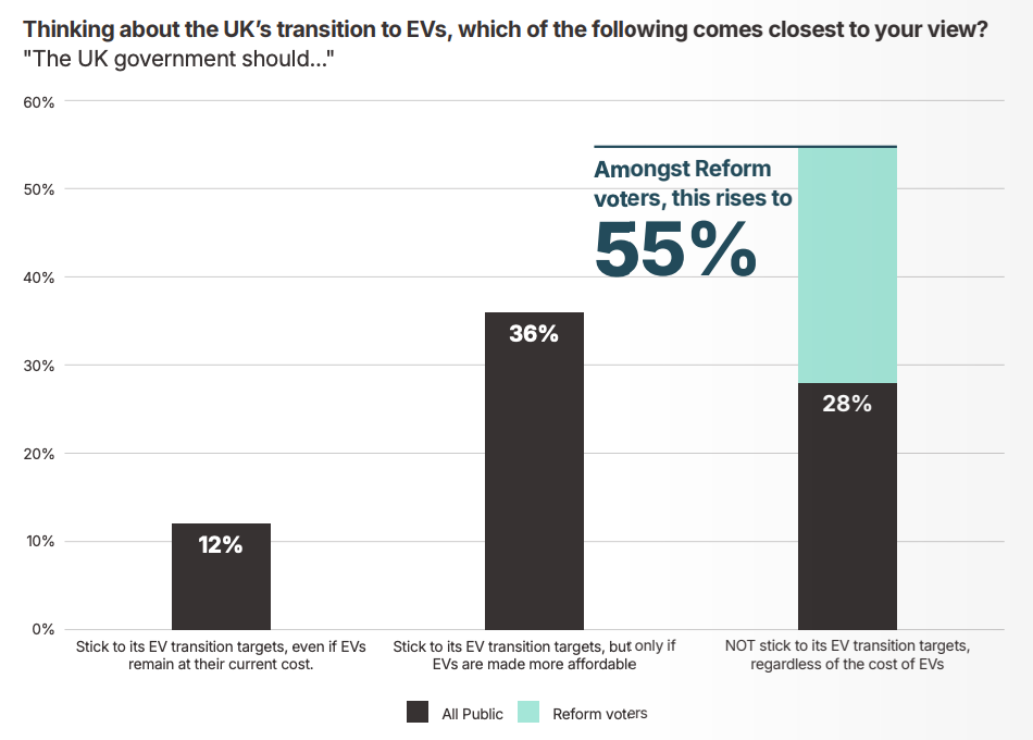 However... This new polling signals there is public support, though only if EVs are affordable. In the poll, 36% of respondents said their backing for EV targets was contingent on them being affordable, whereas 12% supported the targets unconditionally.