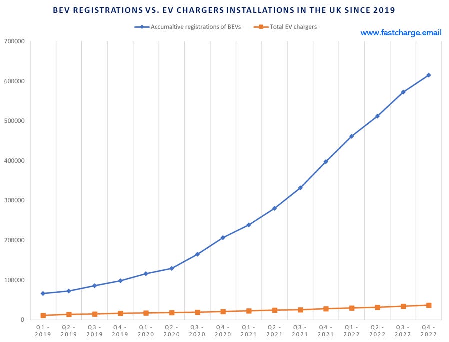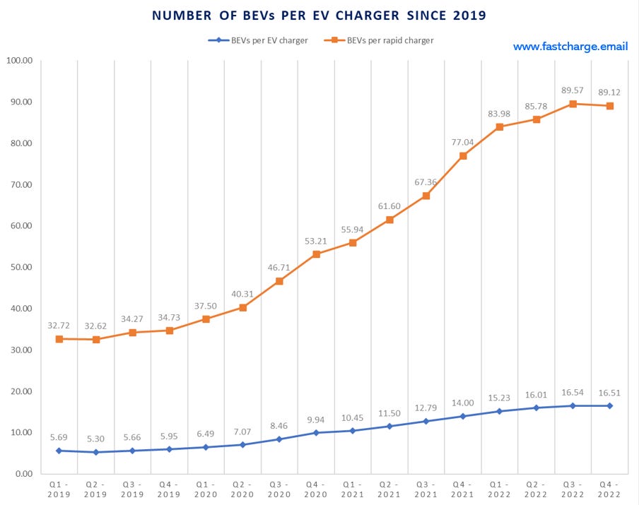 The reality is… when you measure the number of EVs to each charger – which has previously grown exponentially for years – it has actually improved for the first time since 2019. It’s only a minor change but it does indicate that, certainly at the end of last year, charger installations were perhaps catching up. Albeit there is a very, very long way to go.
