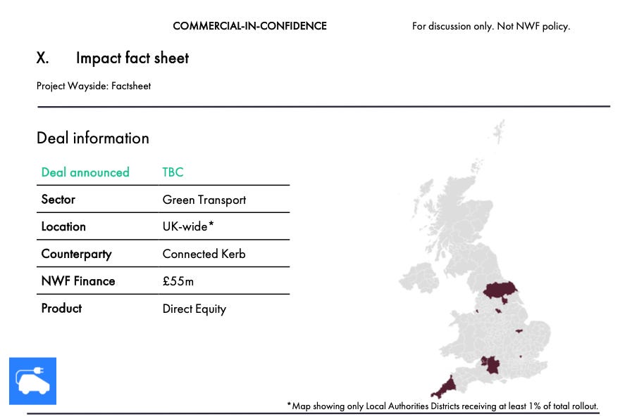 The Fast Charge obtained the investment note used by the National Wealth Fund in 2025. Dubbed ‘Project Wayside’, the document was heavily redacted. However, a map was included under the sub-header ‘deal information’, highlighting regions of the UK expected to receive significant deployment by Connected Kerb. One of these was North Yorkshire. This suggests the contract formed part of the wider national rollout used to underpin the taxpayer-backed investment.