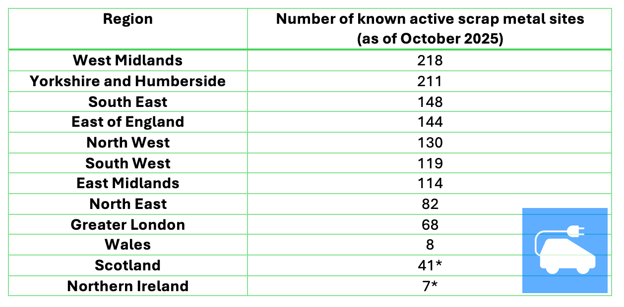 Based on my analysis of public registers, it’s believed there are approximately 1,300 ‘active’ scrap metal yards in operation across the UK – 1,242 of those are in England and Wales.